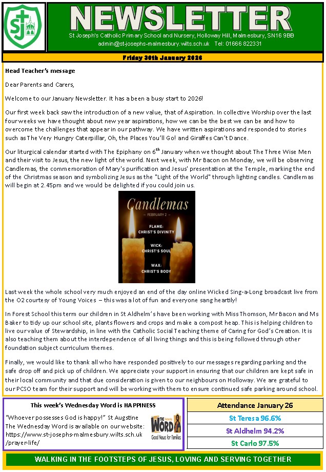 Parish Newsletter 4th Sunday in Ordinary Time 1st Feb 26