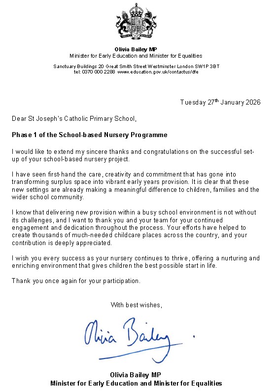 Our nursery is a newly established part of St Joseph’s Catholic Primary School to enrich and provide pre-school education to children aged two and above.